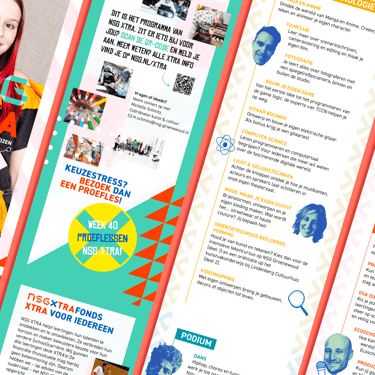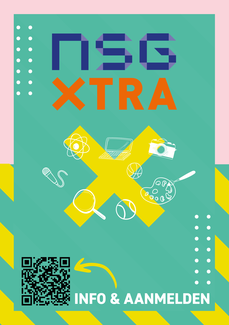 Tijdens mijn stage bij Einder Communicatie kreeg ik de opdracht om een folder en een poster te ontwerpen voor NSG XTRA. NSG XTRA is een programma dat leerlingen de mogelijkheid biedt om buiten schooltijd deel te nemen aan verschillende activiteiten. Het programma is onderdeel van NSG Groenewoud, een middelbare school in Nijmegen. Ik was medeverantwoordelijk voor het creëren van de lay-out en designelementen voor zowel de folder als de poster.
